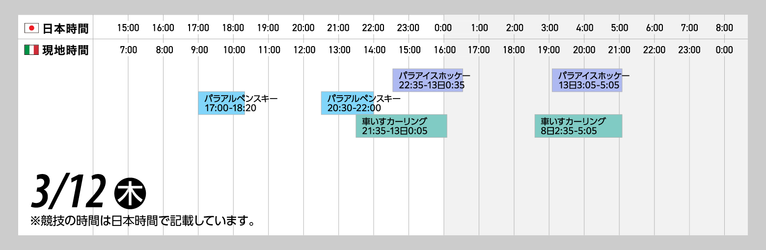 <ミラノ・コルティナ2026冬季パラリンピック本日の競技スケジュール>
