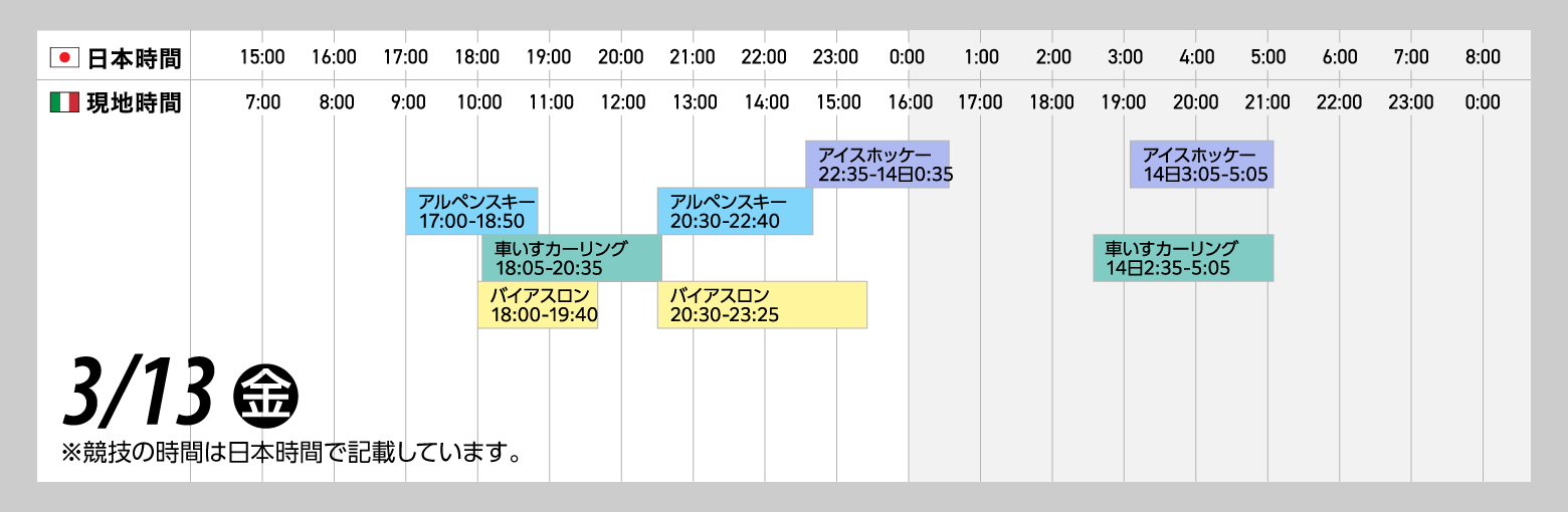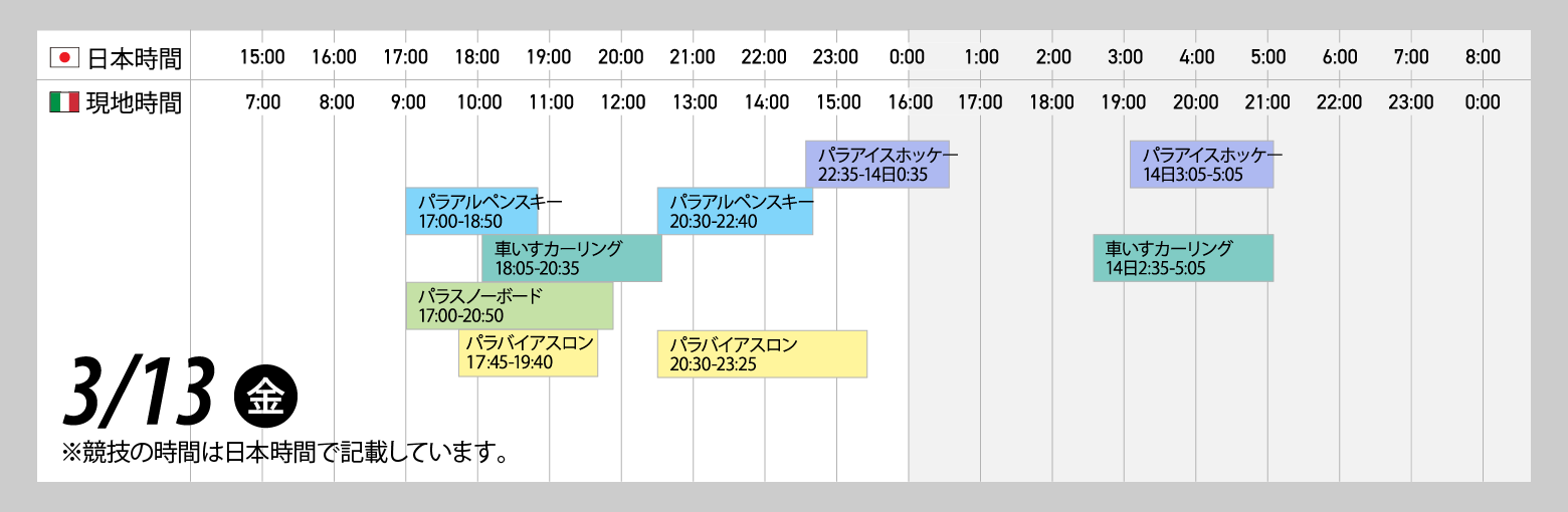<ミラノ・コルティナ2026冬季パラリンピック本日の競技スケジュール>