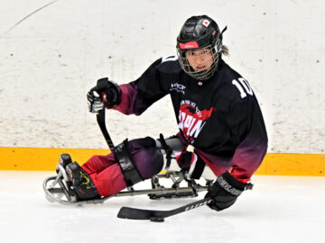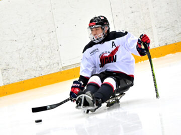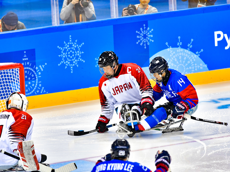 下肢に障がいがある選手が「スレッジ」と呼ばれる専用のソリに乗ってプレー。短いスティックを用いて、駆動用のアイスピックが付いているグリップエンドで氷を押しながら漕ぐ動きで前に進む。また、巧みにスティックを持ち替えて、反対側のブレード部分でパスやシュートを繰り出す。