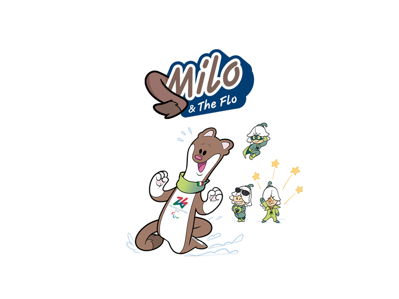 オコジョは、パラリンピックとオリンピックのどちらにも使われているが、毛の色が異なるきょうだい(姉弟)という設定だ。パラリンピックのマスコットである、茶色の毛のミロ(Milo)は弟。対して、白の方は「ティナ(Tina)」という名の姉で、オリンピックのマスコット。それぞれの名前は、大会の開催地である2つの都市にちなみ、ミロ(Milo)はミラノ(Milano)から、ティナ(Tina)はコルティナ(Cortina)から名づけられた。どちらも好奇心旺盛で、季節に合わせて毛色を変え、山岳地帯のような過酷な環境にも順応する強さを持っているそう。