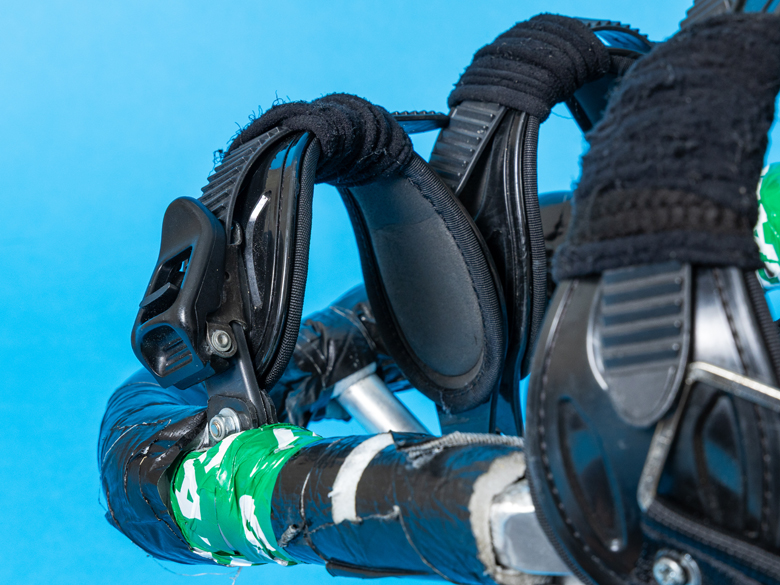 シットスキーは「軽さ」と「丈夫さ」のバランスが大切。軽ければ身体との一体感は高まりますが、軽くするにはパーツを細くしたり薄くするため、その分強度が落ちてしまいます。競技中は衝撃が大きいので、ヒビが入ったり割れたり折れたりすることもあります。「軽くて丈夫」を両立するため、まず形を決めてから、余分な部分を減らして軽くしていくのが基本です。見た目では分かりにくい変化でも、乗った選手は軽さを実感するそうです。なお、源選手のシットスキーは約2.5kgです。