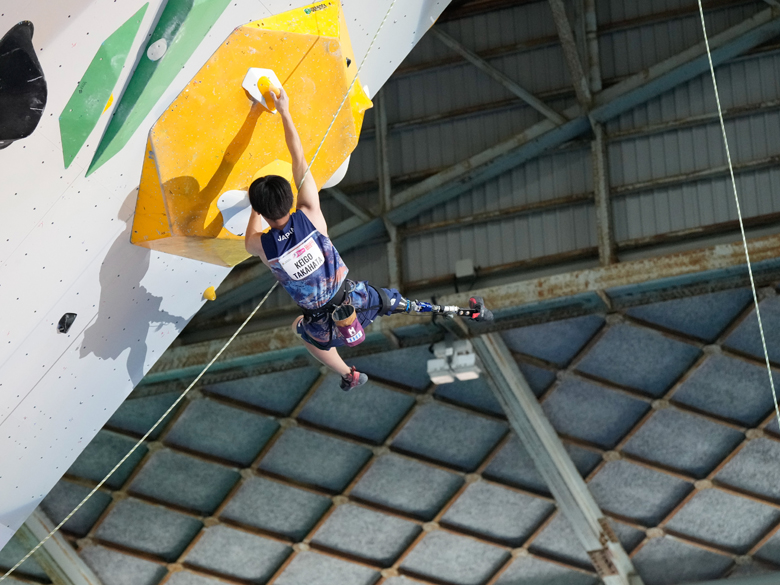 同じくロサンゼルスで金メダルを目指している片足クライマーの結城周平は、決勝で完登ならずも、Bグループ3位に。安定した体幹の強さでぐんぐん登り、ワーキングセッション時の高度を越えた。