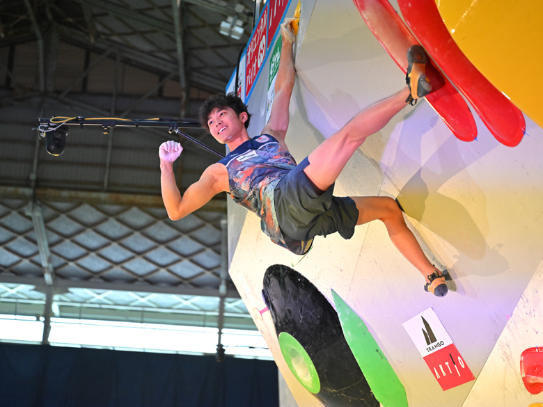 9月の世界選手権は自身過去最高の2位(男子AL2)だった。今年から、長めのボルダー課題を2周・5セット行う持久系トレーニングを取り入れた成果が結果につながっているという。