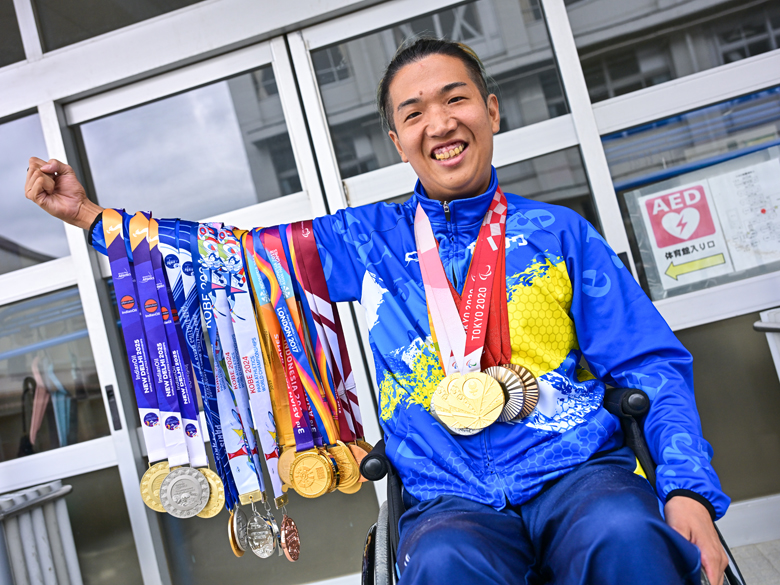 1989年静岡生まれ。東京2020パラリンピックの陸上競技で2冠。パリで400m種目で銀メダルだった悔しさを糧にトレーニングを続け、今秋インドで開催された世界選手権で金メダルを奪還した。小学2年生のときにハマっていたのは、けん玉。「先生にほめてもらった思い出があります」。モリサワ所属。