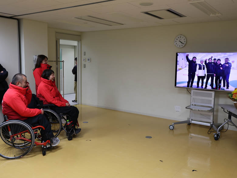 動画メッセージは、昨年からチームに帯同する荻原が自身の伝手で関係者に依頼したり撮影したりしたもの。この日参加できなかった全国の車いすカーラーに始まり、日本カーリング協会会長や各都道府県協会の重鎮、小穴桃里・青木豪ペアなど海外遠征中の日本代表もメッセージを寄せた。