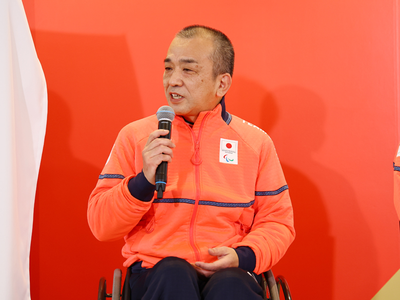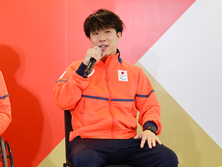 香取さんの軽快なトークの後、ミラノ・コルティナ大会の出場を控えている選手・競技団体の代表として登壇したのが、車いすカーリングの中島洋治とスノーボードの岡本圭司だ。
