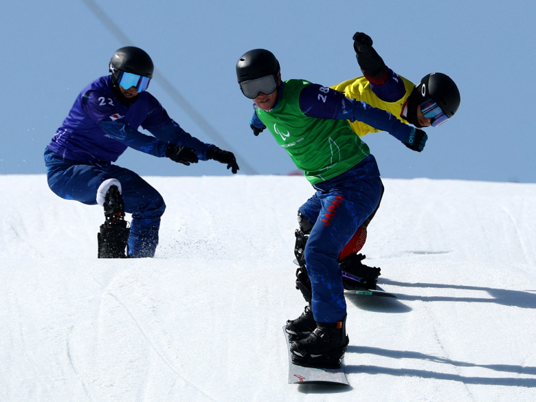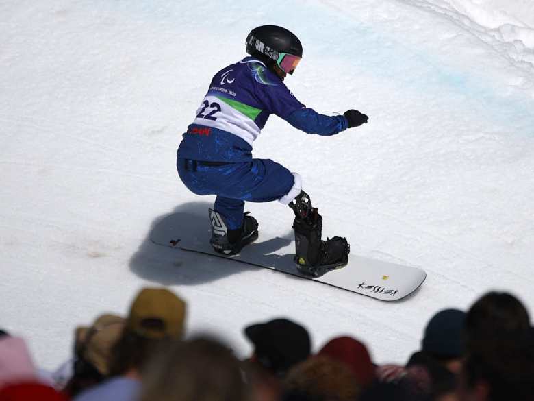 日本代表のパラスノーボーダー7選手が出場した「バンクドスラローム」は、バンクのあるコースを1人ずつ、2本滑走し、そのベストタイムで順位を決める。
