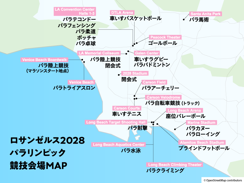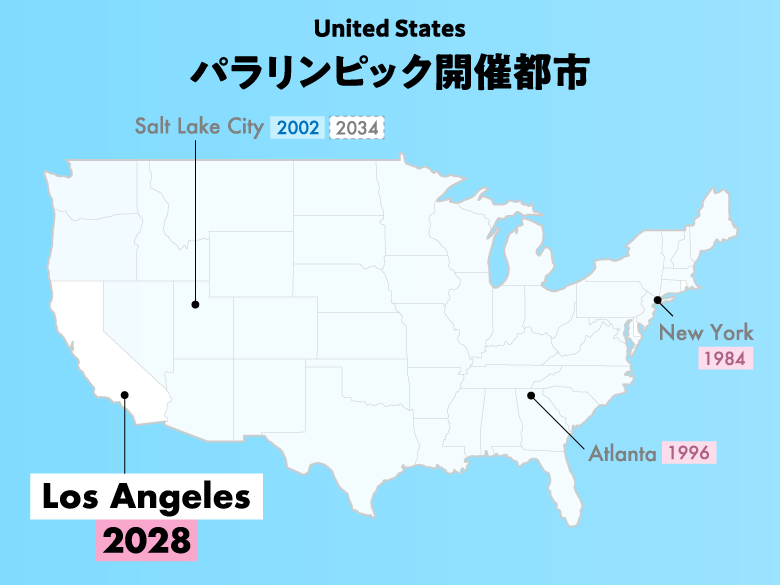 ロサンゼルスでは過去2回(1932年、1984年)のオリンピックが開催されていますが、意外にもパラリンピックの開催は今回の2028年大会が史上初となります。
